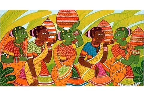 Under the Nizams of Deccan, the rulers always made sure this festival was celebrated with much communal harmony. Till date, the Bhagya Lakshmi temple at the foot of the famous Charminar in Hyderabad celebrates this festival. In times of flood with the Musa river overflowed causing much pandemonium in Hyderabad, the Nizam is said to have prayed to the goddess and floated a ‘Bathukamma’ into the river, after which is subsided to its normal course. This rich syncretic tradition of Ganga-Jamni Tehzeeb was followed for many decades. There are numerous stories of a rich syncretic culture that the Telangana landscape is proud of. Several famous 20th century painters from the region like Sajid Bin Mohammad,Thota Vaikuntham, Kapu Rajaiah and Md Rustum have been inspired by this festival and featured it in their works. Next time you are around the Telangana region during Dusshera, take time out to witness a Bathukamma celebration when the goddess returns as flowers, to bless her devotees.