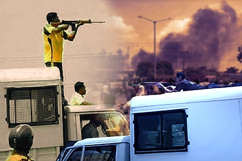 The picture of a police man wearing yellow jersey, black tracks, standing on top of a police van and pointing his gun towards protesters has become one of the haunting images of the tragedy that unfolded in Thoothukudi district five years ago. This image summed up the reckless attitude of Tamil Nadu police on the day when the police force opened fire against unarmed civilians, killing 14 anti-Sterlite protesters on May 22, 2018. The man was identified as Raja, working as a head constable in Thoothukudi district. Raja, along with his crew in a white police van, were seen handling self-loading rifles (SLR) and opening fire by standing on top of the van outside the Thoothukudi collector office. In one of the videos that surfaced on May 22, 2018, Raja was heard commenting that at least “one person should be gunned down.”