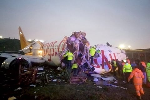 At least three people died and 179 were injured after a passenger plane skidded off the runway at Istanbul's Sabiha Gokcen airport on Wednesday, Turkish Health Minister Fahrettin Koca reported.