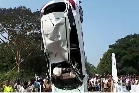 The incident happened around 7:15 am when the five were travelling from Munnar to Pollachi. The driver lost control of the car and hit the bridge, after which the car crashed into the canal. The canal is said to be 11-feet deep.
