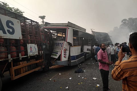 A group of local residents had set fire to a pile of garbage located near the spot of the accident, and smoke from the fire had spread across the area, lowering visibility. The drivers of the RTC buses could not see the other bus coming from the opposite direction, and both vehicles collided with great force.