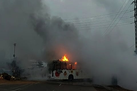 Speaking to TNM, JR Puram Inspector Malleshwara Rao said, "The incident took place at Pydibimavaram. The tourist bus, travelling from Uttarakhand, hit a local bus which was taking a u-turn. The tourist bus then rammed into an ammonium lorry that was approaching from the other side. The collision seems to have triggered a short circuit.”