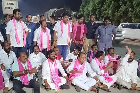 The TRS has alleged that the three men who were arrested are close to several influential BJP leaders. TRS leader Krishank Manne shared photographs of the accused with Union Ministers Rajnath Singh, G Kishan Reddy and Uttar Pradesh Chief Minister Yogi Adityanath on his Twitter account, alleging that the accused were associated with the BJP. Y Sathish Reddy, a TRS leader, also alleged that the accused were agents of Union Home Minister Amit Shah. Several TRS leaders, including ministers Gangula Kamalakar and Indrakaran Reddy, staged a dharna at Choutuppal on the Hyderabad-Vijayawada highway. The protesters raised slogans against the BJP and Prime Minister Narendra Modi. They alleged that the saffron party was trying to pull down the TRS government by luring its MLAs with offers of money and posts.