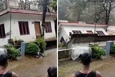 Visible cracks appeared on the ground in front of a small house that sits close to the Manimala river in Mundakayam, a town located in Kanjirappally taluk of Kerala’s Kottayam district. The river running alongside the house was in full spate, rushing by with strong water currents. As the cracks appeared on the ground, which by then had clearly demarcated the house from the road, the residents in the area knew it was only a matter of seconds before the house collapsed. “Look, it has titled… it is tilting,” a man can be heard crying out in horror in a video that is now being widely circulated. “It is gone,” another man said even before the house collapsed.