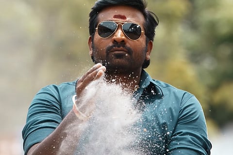 Produced by B Bharathi Reddy of Vijaya Productions, the film’s teaser introduces Vijay Sethupathi’s character as a someone who emerges from the ashes to seek revenge. His fist holding on to a red piece of cloth makes an appearance in the teaser first before we can see his face. With kungumam smeared across his forehead, Vijay Sethupathi tosses his sunglasses in one shot that lands with a thud on his jeep’s bonnet. In another shot, he is seen stylishly driving through a fence and swerving the jeep, raising a cloud of dust on his path.