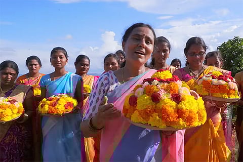 "You are the power that douses the flames of the forest, oh Bahujana Bathukamma...We will not let indigenous Chenchus be ruined. We will become the thunder of the flowers," the song says, vowing to fight against exploitation, while expressing concern that the forest ecosystem is under threat.
