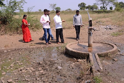 Officials inspecting a well in Bidar district