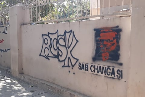 The MLA's men had painted over the graffiti after confronting the guards and staff at the college. The same day, members of RSS, VHP and other pro-Hindu groups had painted over graffiti at Church Street in Bengaluru. On Monday night, two unknown persons had painted graffiti against the BJP, Modi and CAA all over Church street.