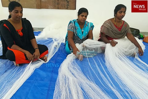 At the Matsyafed Net Factory, behind Bheemappally, there are fewer women at work today. Others have taken leave for rituals and programmes observing one year of Ockhi. “The order was to take 42 women, who were under 40 years of age, and have not completed SSLC. But only 33 have come,” says Geetha VB, manager.