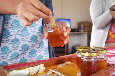 Hoopoe on a Hill currently employs six women who distill, bottle, package and ship out the honey at their studio in Kodaikanal. They make four different kinds of honey — multi-floral, Eucalyptus, bitter jamun and wild cerana — which vary in taste, colour texture due to a number of factors including, the forest where it is harvested, the bee that produces it and the time of year during which it is harvested.
