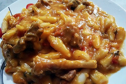 The only problem with this dish is that the sutriyan tend to absorb most of the gravy and it becomes less saucy as a result. So if you reheat and eat the leftovers for dinner after you’ve had it for lunch, it’s not quite the same. But then in my house, you might wonder, what leftovers?