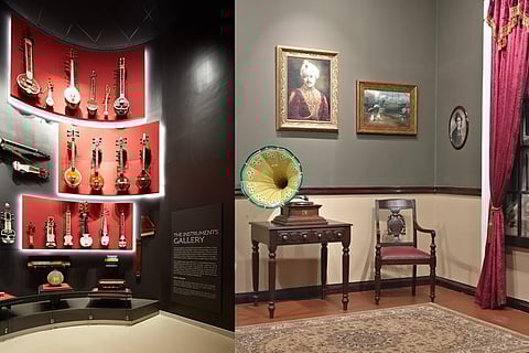 The Instruments Gallery has a stunning floor-to-ceiling display of 108 Indian musical instruments. I had glimpses of Vidwan Manjunath’s ghatam, Dr ML Vasanthakumari’s tambura, a peacock-shaped mayura veena, and intriguing metal horns, leather drums, stringed wooden creations and a variety of mouth harps. I was able to delve deeper into the origin, history, craftsmanship, material, sound, manufacture and performance of these instruments and musical tradition through a digital interface with audio and video clips.