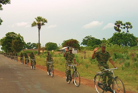 Eventually Soosai arrived. This time he was dressed in full camouflage uniform and looked much more impressive than he had done the night before. Today he was wearing a pistol in a holster and carrying a T56. He lifted his weapons and said ‘gifts from Premadasa.’ With him was a cameraman who was going to film our journey for the Tigers’ propaganda arm. I saw this footage years later, in captivity. By then it was like a movie; a disconnected experience of watching yourself in a film.