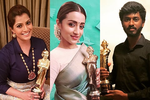 Vetrimaaran’s Vada Chennai won under two categories - Best Screenplay and Best Art Direction (Art director Jackie). While director Ameer won Best Supporting Actor for his role in Vada Chennai, Dhanush received Best Actor Male for this film and for Maari 2. Trisha’s role in Premkumar’s 96 won her the Best Actor Female.