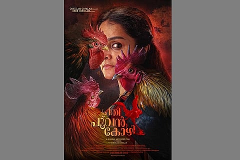 The first look poster of Manju Warrier’s Prathi Poovankozhi is out online! The poster was unveiled by Malayalam superstar Mohanlal and is going viral among the movie buffs. It features a feisty looking Manju Warrier with three cocks masking her face partially.