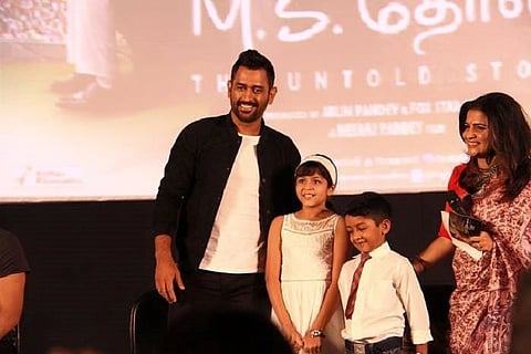 Indian ODI captain Mahendra Singh Dhoni on Friday floored hordes of his fans, including actress Jyotika and her kids Dev and Diya, as part of his promotional tour for upcoming biopic, Dhoni: The Untold Story.