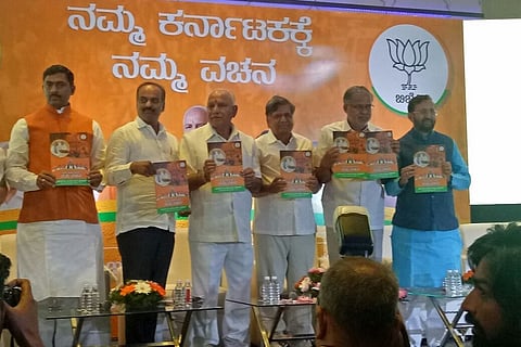 With just eight days to go for the Karnataka assembly elections 2018, the BJP released its poll manifesto on Friday. The manifesto, released by former CM BS Yeddyurappa at the Radisson Blu hotel in Bengaluru, focusses on farmer welfare, women empowerment, skill development for youth and promoting Kannada culture, among other things.