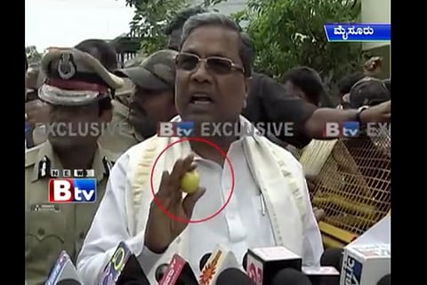 Throughout the report, the anchor and the reporter discuss how Siddaramaiah could have ended up holding the lemon.