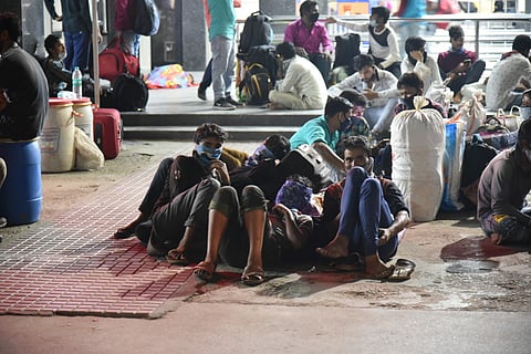With the lockdown restrictions coming into effect in Bengaluru at 9 pm on Tuesday night, a rush was reported in railway stations and bus stations in Bengaluru with large numbers of migrant workers leaving the city. A similar rush was reported in the Krantivira Sangolli Rayanna (Majestic) Railway station at the centre of the city where long lines of migrant workers were reported boarding the evening train to New Delhi. Here too, many people were seen camping at the railway station waiting for their trains.