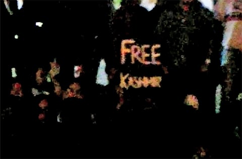 Videos showed one person holding a small poster in black with the words “Free Kashmir” written in white, and the videos have been shared widely on social media.