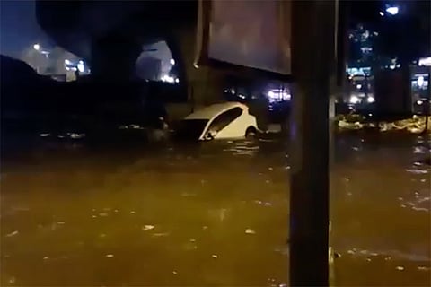 The video clip shows a white car, with its bonnet under water, floating dangerously on the flooded road. Horrified bystanders can be heard exclaiming that there is a woman trapped in the car. It is then that they jump into the waist-deep water to rescue the woman. Four men then rescue the trapped woman from the car, and bring her to safety.