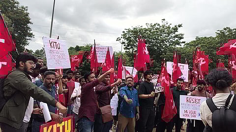 Cries of “Inquilab Zindabad” and “we are workers, not your slaves” rang through a protest against the proposed amendment to the Karnataka Shops and Commercial Establishment Act, organised by the Karnataka State IT/ITeS Employees Union (KITU) at Freedom Park in Bengaluru on Saturday, August 3. The amendment is set to increase the number of working hours from the existing 10 hours per day (including overtime), to 14 hours (including overtime).