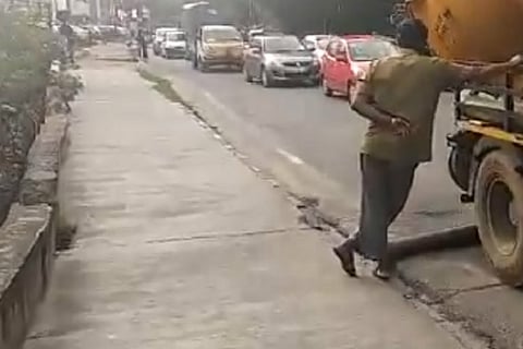 In a video posted on Twitter by M Lakshmikantha, a research associate with the Namma Bengaluru Foundation (NBF), BWSSB workers can be seen releasing sewage from a tanker run by the Board into a rajakaluve.