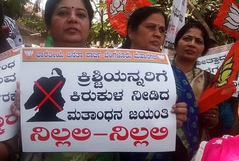 Two days before the government is due to observe Tipu Jayanti, the BJP staged protests in the state capital, alleging that the Congress was only trying to play vote bank politics with the move.
