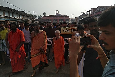 Infuriating Dalit activists and defying a police ban, members of 'Yuva Brigade' conducted 'Kanaka Nade', a cleanliness campaign, on the premises of the Pejawar Krishna Math in Udupi