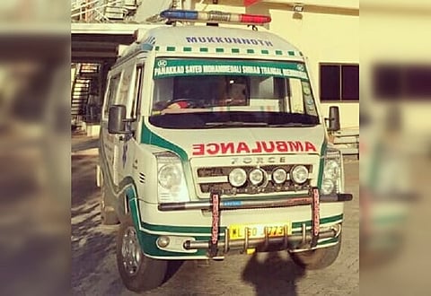 An Ambulance (KL-60 - J 7739) is travelling from Mangalore to Trivandrum with a 15 day old small baby.
