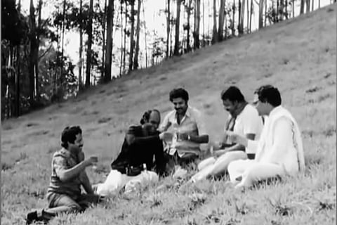 The five men on the hills, raising their glasses together, could be just any gang chilling out on a cold day. Except, these are all known faces for Malayalis, actors of great calibre who are no longer with us. Bharat Gopy, Nedumudi Venu, Innocent, Murali, and James Chacko are seen laughing together in this scene from the 1985 film Chidambaram that is now being circulated with a new label – Heaven.