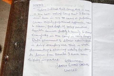 The Alappuzha district collector, S Suhas on Friday took to Facebook to share a picture of the note written by Sarkar.