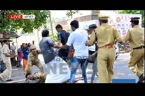 A video of the incident published by Manorama News shows the activists arguing with the policemen, following which, they assault two officers on duty.