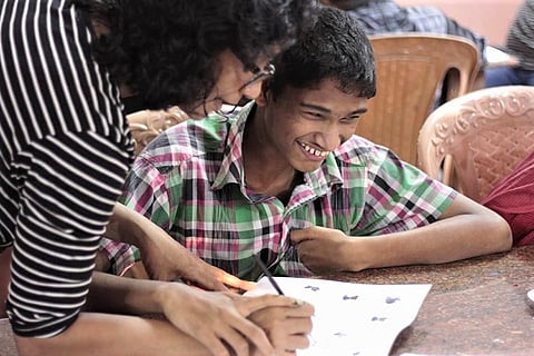 “The volunteers help them draw what they want, explaining it. For example, if a student wants to draw an elephant, the volunteer dips her/his fingers in paint and moves the hand on the canvas explaining the elephant’s shape and body parts. Some students don’t like taking help. In that case, a volunteer helps them identify colours. The rest is up to them,” Ananthu explains, adding an anecdote of a Mohanlal fan. “Christo, who is completely blind, is a hardcore Mohanlal fan. After painting his version of the actor on the canvas, he asked the volunteer to write ‘I love you, Lalettaa’ on it. He wanted to gift this painting to the actor but we couldn’t make that wish happen. We tried, but we couldn’t reach him.”