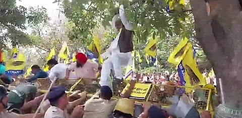 Several leaders of Aam Aadmi Party (AAP) were detained on Tuesday, March 26 by the Delhi police for staging a demonstration outside Prime Minister Narendra Modi’s residence in Delhi against the arrest of Delhi Chief Minister Arvind Kejriwal. Punjab Education Minister Harjot Singh Bains and MLA Somnath Bharti were among the protesters who were detained.