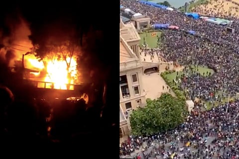 A group of protesters on Saturday entered the private residence of Sri Lankan Prime Minister Ranil Wickremesinghe and set it on fire, hours after he offered to resign to make way for an all-party government amid unprecedented protests in the country for the resignation of the government led by President Gotabaya Rajapaksa.