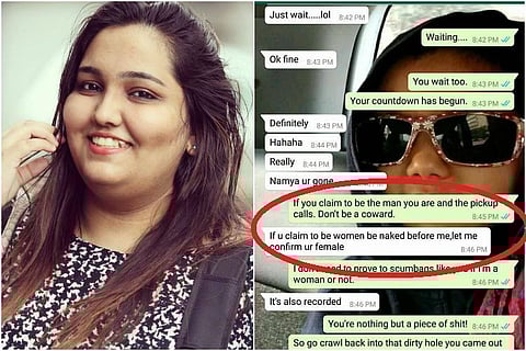 When a disturbed Namya confronted him about his attempt to sexually harass her on January 3, the man had the audacity to not only threaten her, but to ask her to ‘prove’ to him that she is a woman.