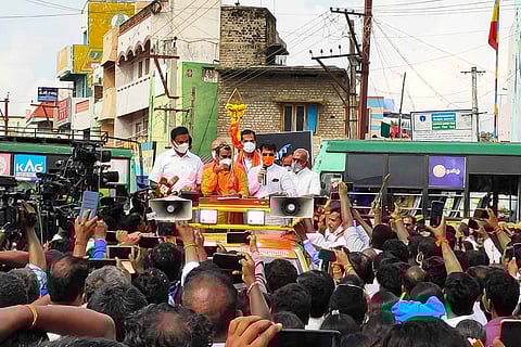 The BJP leaders reached Tiruttani at 12.30 pm on Friday. The Vetrivel Yatra was planned by the BJP in honour of Lord Murugan and with an eye on consolidating the Hindu votes across Tamil Nadu ahead of the 2021 Assembly Elections. The yatra was scheduled from November 6 to December 6, with leaders and workers visiting six abodes of Lord Muruga. However, opposition parties raised objections stating that the yatra was set to conclude on December 6 - the anniversary of the demolition of the Babri Masjid as well as the Rememberance Day of Ambedkar.