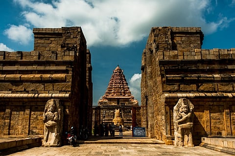 The vimana sits above the garbhagriha or inner sanctum, which is accessed through a beautiful pillared mandapa or hall. It is rather plain on the outside since it has been rebuilt after the original wall was ruined. However, the stretch closest to the vimana reveals that it was originally two-storeyed and quite ornate. There are three entrances to this mandapa - one in front, and two on either side, and they are all guarded by pairs of enormous dwarapalas or guardian deities. The walls flanking the side entrances are decorated with elaborate carvings depicting episodes from Shaivite mythology. Especially stunning is the sequence of panels telling the story of the saint Chandikeshwara, who is worshipped along with Lord Shiva in the region. For a long time, it wasn’t uncommon for transactions in temples to be carried out in Chandikeshwara’s name! A separate shrine dedicated to him stands right next to the vimana.