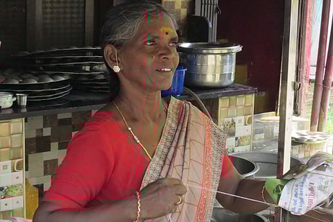 While swiftly tying a thread over a paper that holds idlis ensconced in a banana leaf, to give the parcel to a waiting customer, Eswari Thangavel of Praveen Idlies, reminisced her journey. Her father Seerangan used to weave kaadaa, a cloth material.