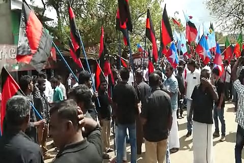 Dravida Munnetra Kazhagam (DMK), Thanthai Periyar Dravidar Kazhagam, Tamizh Manila Congress (TMC) and Tamil Puligal were present at the protest, which saw the participation of over 300 people.