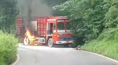 A truck carrying gas cylinders on Tamil Nadu's Coonoor-Mettupalayam road caught fire on Tuesday, December 12. The truck was enroute to Coimbatore from Coonoor when the incident occurred. According to reports, the truck was carrying empty cylinders and tires at the end caught fire which quickly spread to other parts of the vehicle. No casualties or injuries have been reported so far.