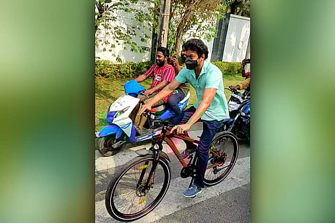 As Vijay’s entry drew in huge crowds, excited fans rushing in to catch a glimpse of their favourite star zipping through on a bicycle, the actor was forced to return by a bike instead. Vijay was seen riding pillion on the bike of one of his employees after casting his vote at Neelankarai. The crowd gathered outside the booth made it impossible for him to take the bicycle back home, and according to some reports, the actor couldn't even reach the cycle in the crowd. The bicycle, we hear, had to be brought back later by one of his employees.