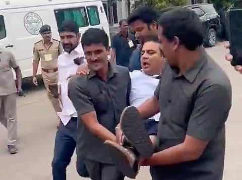 BRS Working President K. T. Rama Rao and other MLAs were evicted from the premises after they protested before the Chief Minister's chambers.