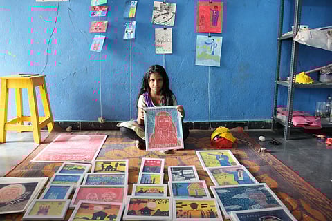 Puja Chauhan, who works as a guest faculty with International Institute of Information Technology (IIIT), Hyderabad, organised ‘Savitribai Phule Drawing Class’ in the locality Masjid Banda, Kondapur, almost exactly a year ago. On Thursday this week, the results of those efforts were displayed in an art exhibition, featuring drawings, caricatures, paintings, and wood cut prints by the talented kids under 15 years of age. It was held in Masjid Banda Basti on the 188th birth anniversary of Savitribai Phule, steps away from Hyderabad Central University.