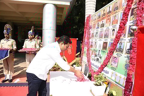 Telangana Rashtra Samithi (TRS) working president KT Rama Rao paid tributes to the Pulwama martyrs at the CRPF Headquarters in Hyderabad on Sunday.
