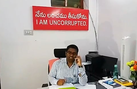 ADE Podetti Ashok Kumar has garnered the attention of the media after his new notice board that reads: ‘Nenu Lancham Theesukonu’ in Telugu (I don’t take bribes) and ‘I am uncorrupted’